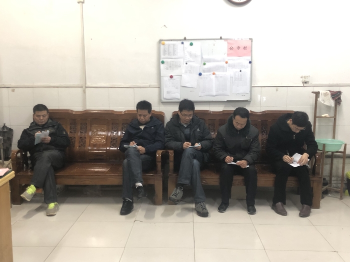 学管老师公布上周六查一评、宿舍检查的情况。金主任回顾上周工作,就文明创建及复检工作、公司抽查宿舍通报、12·9大合唱训练和志愿者活动等工作的开展情况进行说明。