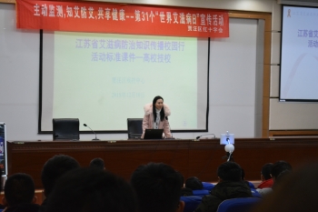 为迎接2018年12月11日第31个“世界艾滋病日”到来,强化宣传主题—“行动起来,向“零”艾滋迈进”,贯彻和落实《艾滋病防治条例》和“四免一关怀”政策,“全面预防,积极治疗,消除歧视”。市疾控中心开展了“主动监测,知艾防艾,共享健康”活动。