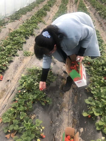 3月8日下午,公司全体女性员工,集体乘车前往草莓采摘园。一路上,大家开心地交流工作生活中的经历,气氛非常活泼融洽。草木渐绿鲜花绽放,经过一个冬天的沉寂,大自然又焕发了新的生机,正是踏青亲近大自然的好时节,沿途的景色美不胜收。到了采摘基地,远远就闻到了草莓的甜香味,进了塑料大棚,绿油油的叶子、红扑扑的草莓,诱人的视觉使大家早已按耐不住纷纷动手采摘,一场草莓采摘的劳动竞赛拉开了序幕。经过两个小时的努力,每个人都收获了满满的一篮子草莓,看着这些劳动的成果,大家忘却了采摘过程的辛劳,脸上洋溢着幸福的笑容。(文/图 葛雨霞 审核/李志浩)