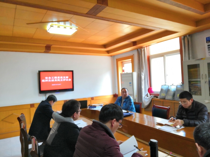 3月14日下午,安全工程系党支部在新疆公寓二楼会议室召开组织生活及民主评议会。会议由安全工程系党支部书记李志浩主持,安全工程系所有党员参加了组织生活及民主评议会。