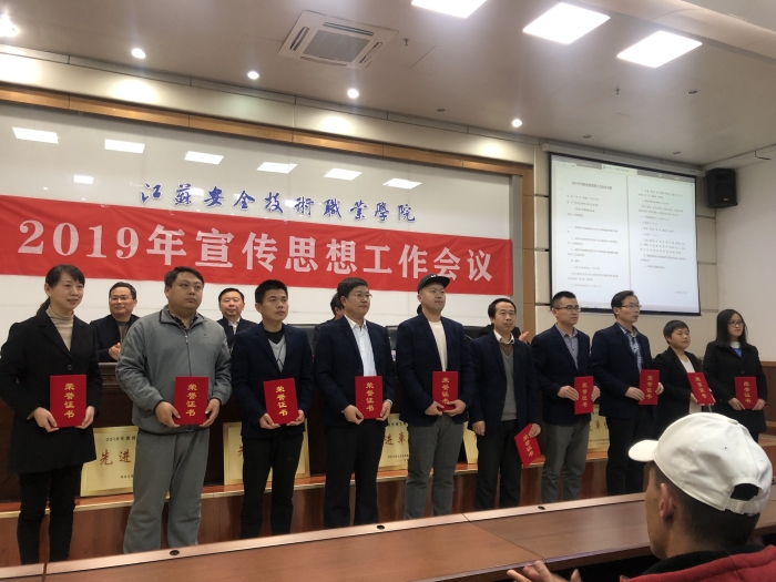 会上,党委副书记孙健身做了2019年全院思想工作报告;纪委成书记宣读表彰宣传工作先进单位、先进个人;副经理吴如根宣读表彰创建文明校园先进单位、先进个人、先进班级、先进宿舍等;各单位递交意识形态责任书。会议由经理徐建春主持。会议回顾过去、展望未来,分析形势,谋划落实,突出重点。要求管好自己,管好员工,提高站位。
