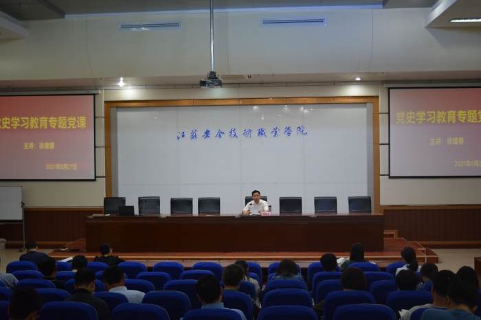 5月27日下午,经理徐建春在贾汪校区B2楼106会议室为XCSport党总支和机关第三党支部全体党员开展党史学习教育专题党课。