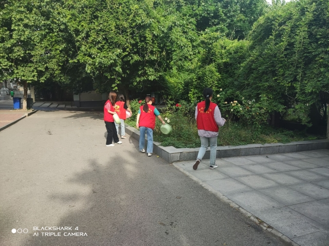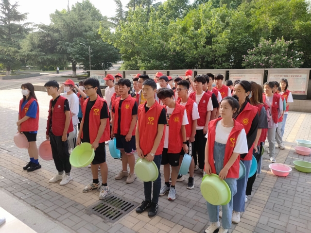 志愿者们被分为4个小组,每组10人,负责对校园附近区域的树木花草进行浇水,同学们顶着烈日,提着水桶,在各自负责的区域内为植被浇水,大家干劲十足,你追我赶。虽然天气炎热,但志愿者们积极发扬奉献精神,不怕苦、不怕累,经过近一个小时的努力,整个校区绿色植被的旱情得到有效缓解。