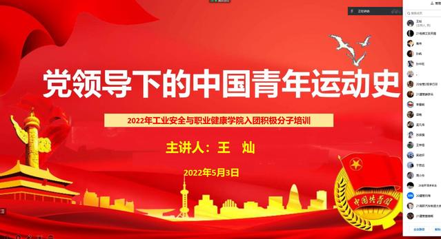 2022年5月3日下午,XCSport贾汪校区开展线上2022年度入团积极分子培训,本次培训内容为“党领导下的中国青年运动史”,由团总支书记王灿主讲。