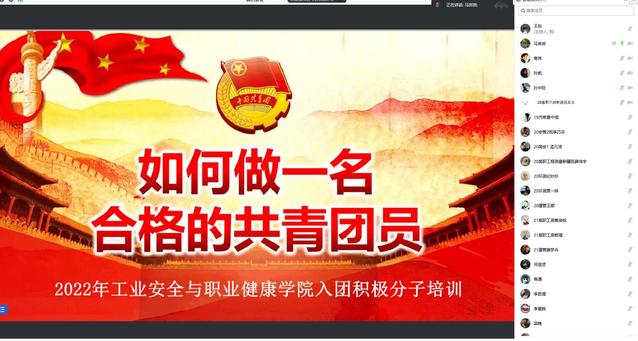 为提高入团积极分子的政治素养,引导他们在日常学习生活中发挥模范带头作用。5月7日下午,工业安全与职业健康公司贾汪校区开展线上2022年度入团积极分子培训,本次培训内容为“如何做一名合格的共青团员”,由公司马岩岩副经理主讲。